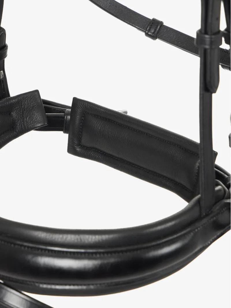 The LeMieux Dressage bridle is a classic example with a contemporary twist and is just made for the ring. The delicate, detachable clincher browband is anatomically shaped and complements the statement padded crank noseband beautifully.