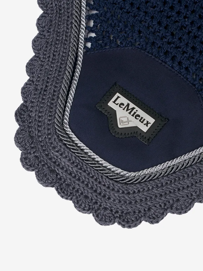 Sporting the signature LeMieux Loire embossed metal motif these luxurious fly hoods are a stylish addition to the collection. Beautifully hand made from three-way knitted crochet with a luxurious satin fabric front piece and soft stretch Lycra ears.