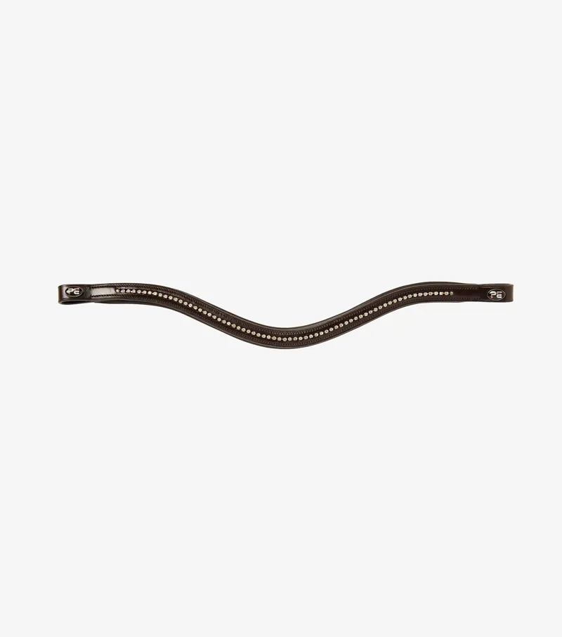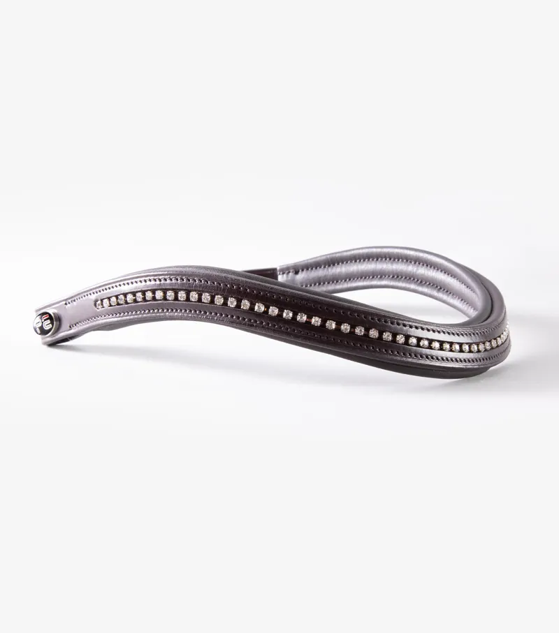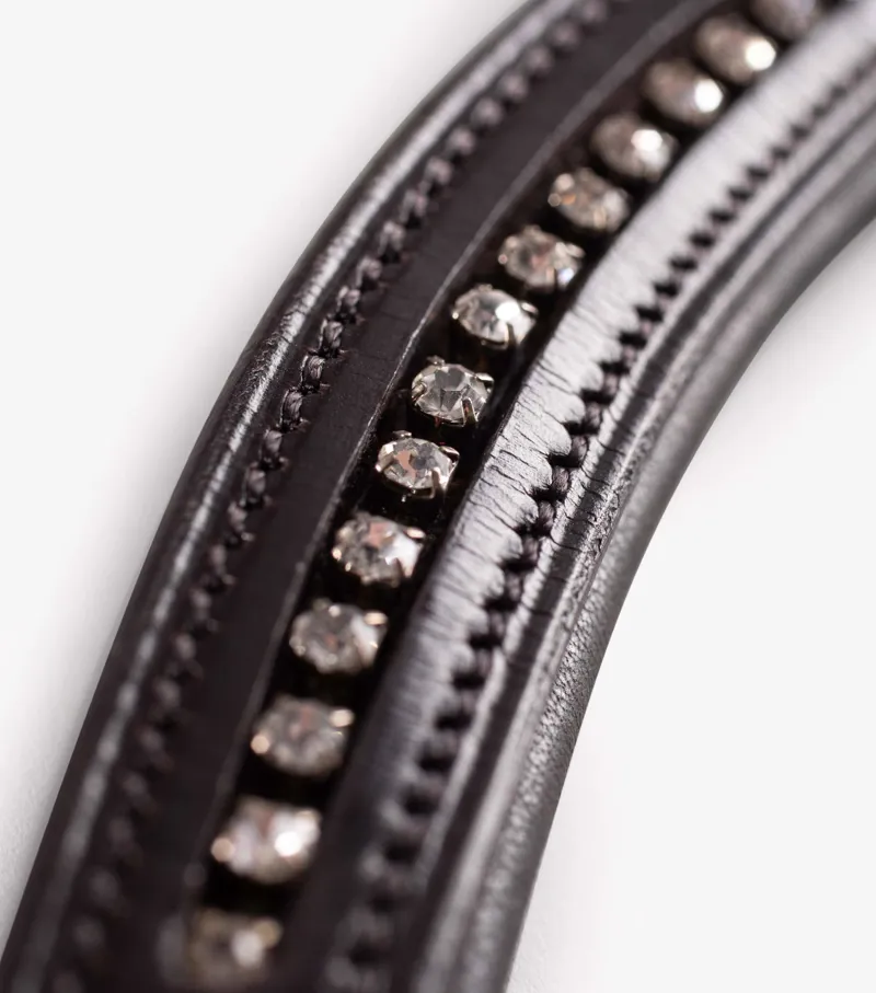 With a row of elegant, smaller diamantes, this genuine Italian leather browband is perfect for those who prefer a subtle outline with just a touch of sparkle. Finished with sleek ‘PE’ branded brooches and and premium quality stitching. A simply stunning browband fit for any occasion.