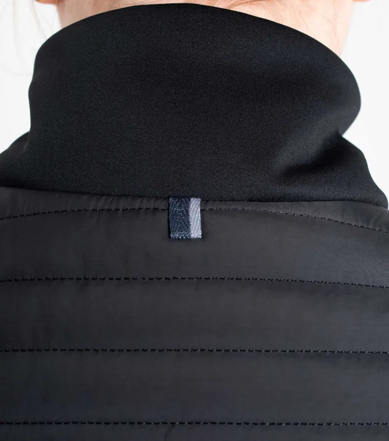 The main body of the Mini ElenaGirl’s Hybrid Riding Jacket has been engineered from a durable yet lightweight water-resistant quilted shell material to create a built-in riding gilet appearance to this jacket.