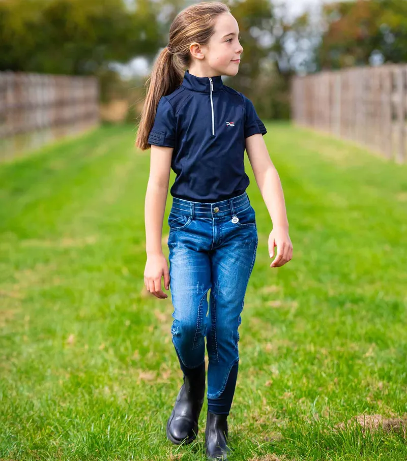 Crafted with style and comfort in mind, to keep you on-trend and comfortable both in and out of the saddle. Durable, versatile and a fresh style, these kids denim riding breeches are an everyday work and riding essential for any equestrian girl’swardrobe.