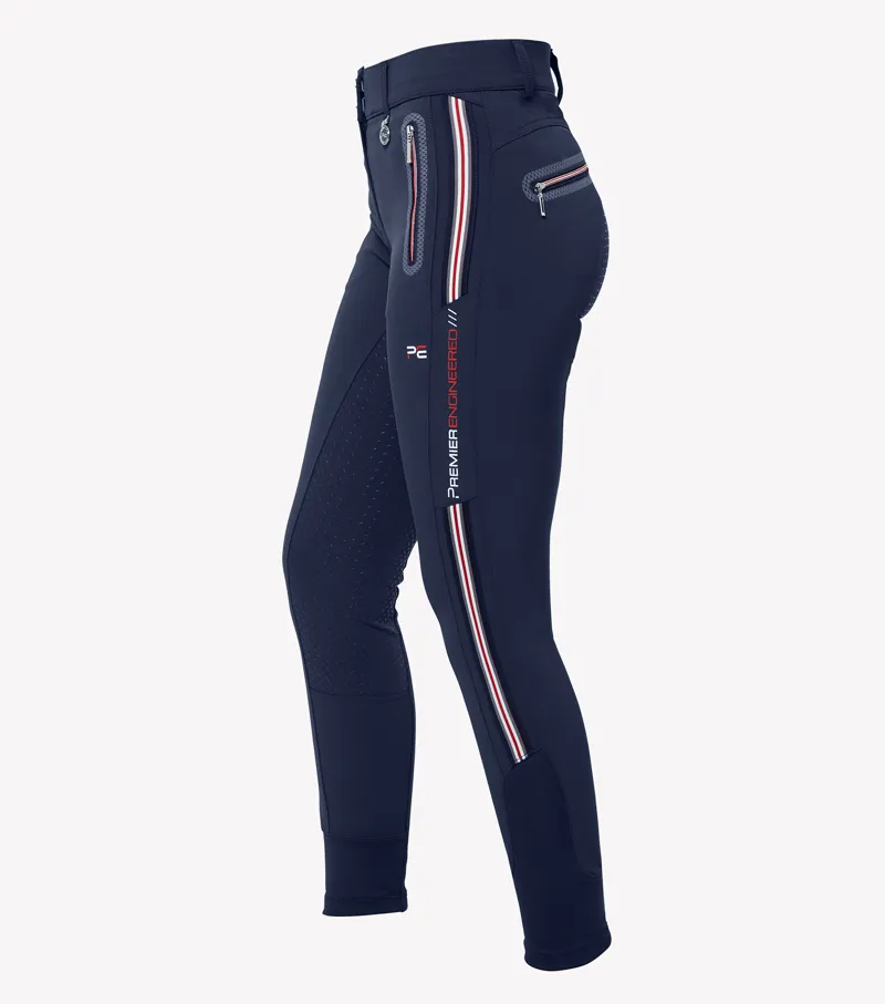 Zip pockets on the front of the breeches offer a place to store valuables and 2 rear pockets enhance shape. A standard rise waist offers a streamlined silhouette, finished with belt loops, a double slider fastening and our signature PE brooch.