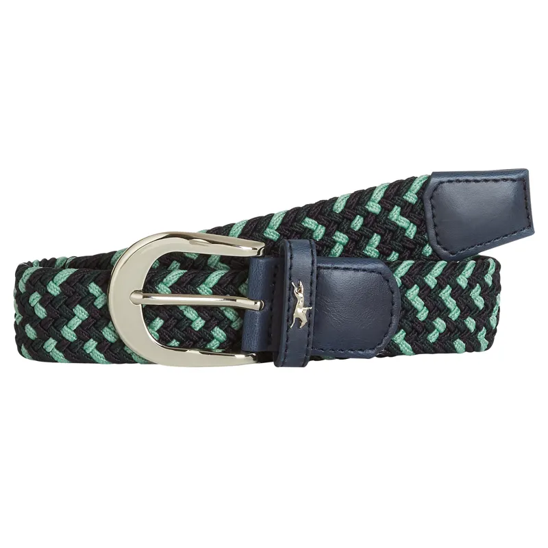 Elastic braided belt with leather application | logo metal horse on the belt loop
