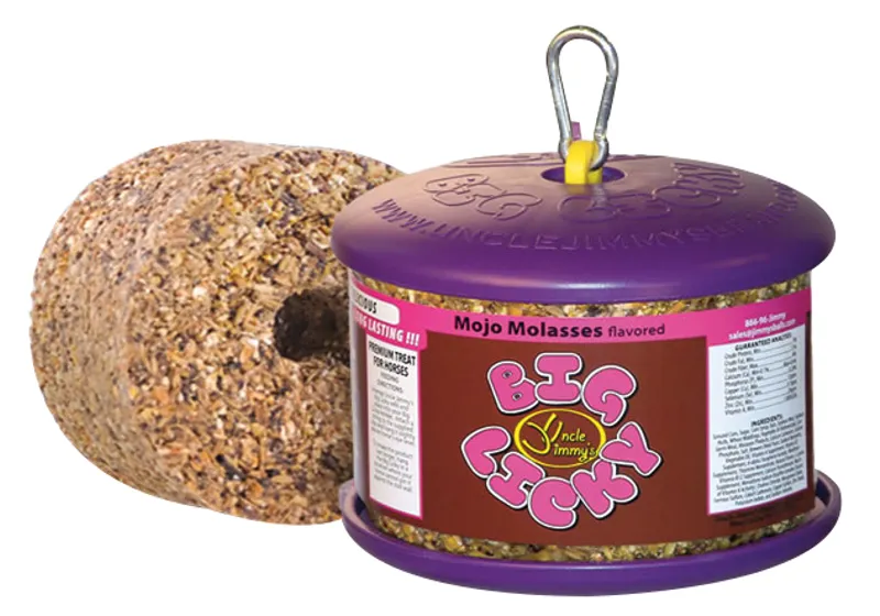 This treat fits the big licky treat holder and helps to relieve boredom in the stable.